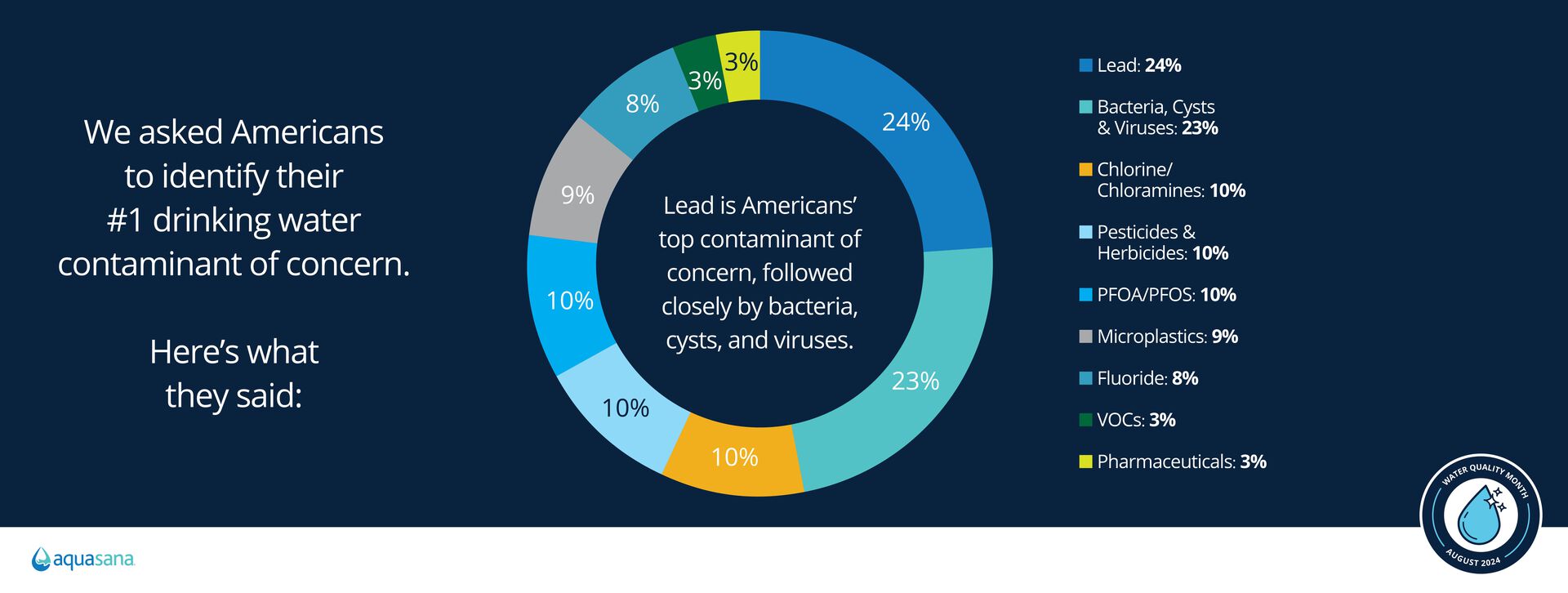 In 2024, lead was the number-one contaminant of concern in America. Nearly one quarter (24%) of survey respondents selected it as their top contaminant concern, up 50% year-over-year (YoY) from just 16% in 2023. Although lead has historically remained near the top of the list, it’s possible that the resurgence of widespread news coverage about lead contamination across the U.S. helped put the toxic metal back in the top spot.