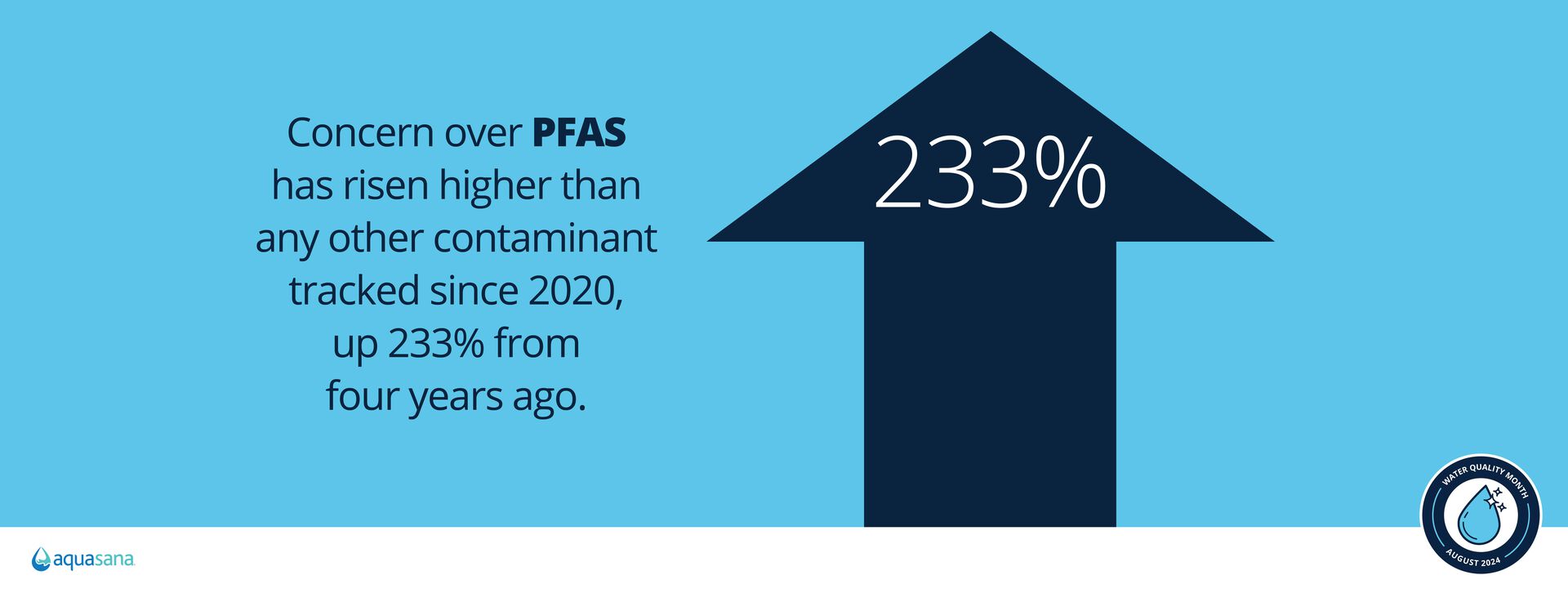 Another contaminant that’s frequently in national news headlines is PFAS, and our survey found that concern among Americans is significantly on the rise. Also known as “forever chemicals”, they are a category of nearly 15,000 synthetic chemicals that are nearly indestructible and have a long list of health risks.