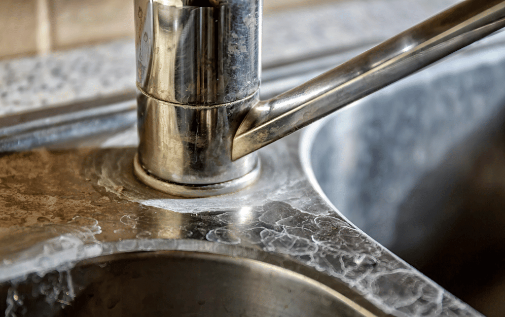- Mineral Deposits: As hard water comes in contact with surfaces, it leaves small mineral deposits of limescale which can appear as white spots on fixtures, dishes, and clothing.